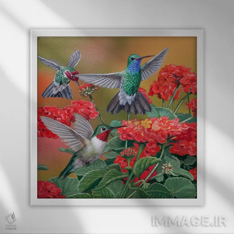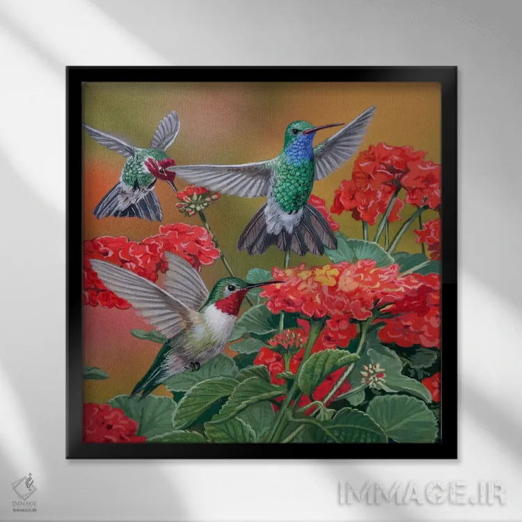 برای دیوارهای ساده، «مرغهای مگسخوار و گلها» اثرِ «ویلیام واندر داسون» به دیوار، انرژیِ نرم و زنده میدهد؛ برای نشیمنهای خانوادگی انتخابی خوشسلیقه است. به دیوار، قصه میدهد—اما قصهای آرام و شیک.