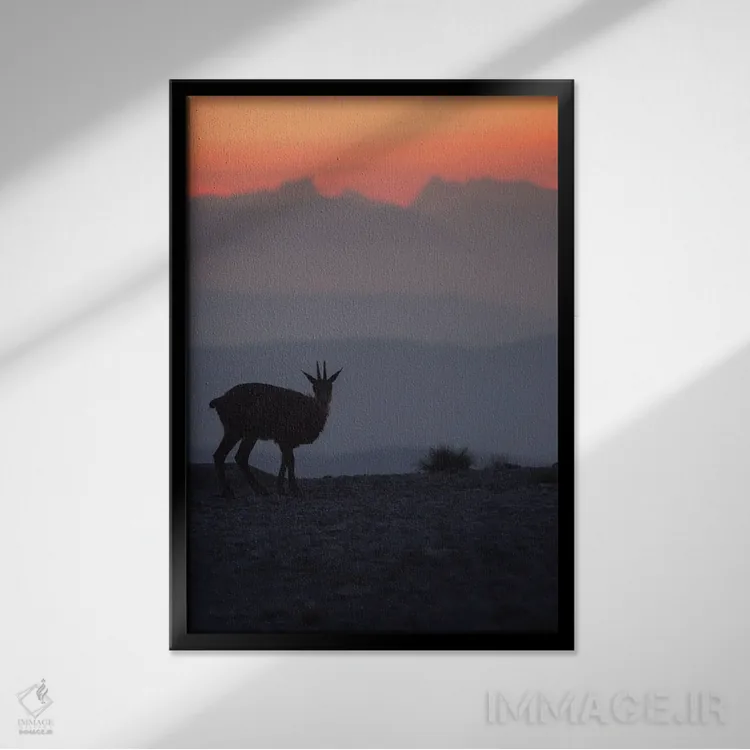 تابلو گاومیش رو به کوه‌ها I اثر آنابل شابر - نمای قاب‌دار مشکی