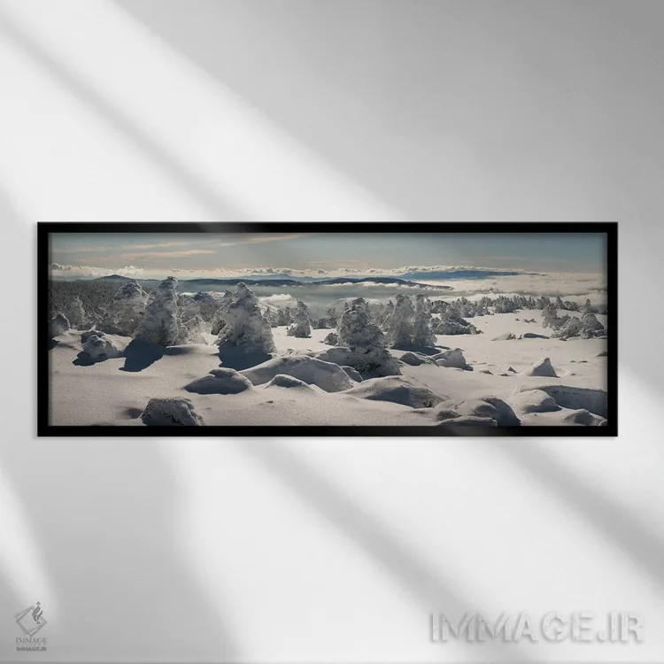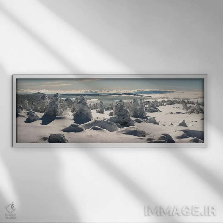 براساس پالت سرد اثر، قاب سفید مات (فریم باریک) پیشنهاد اول است و نقرهای برسخورده (متالیک) مکمل. برای سفارشهای پروژهای با ابعاد و قابهای اختصاصی با ایماژ در تماس باشید.