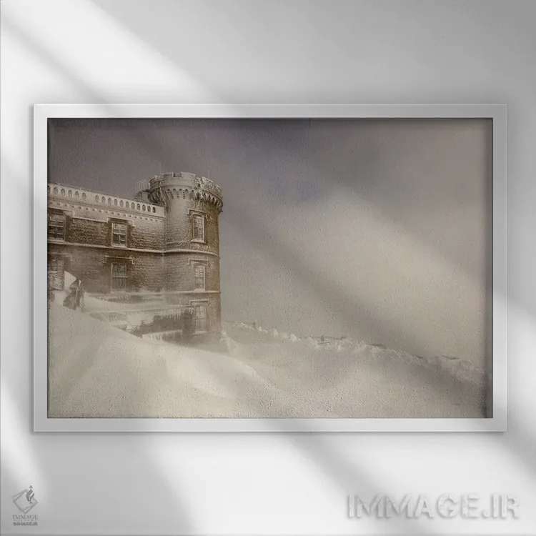 برای فضاهای مینیمال، «طوفان برف بر فراز قلعه» اثرِ «آنابل شابر» یک زیباییِ دقیق و حرفهای بسازد؛ برای لابی و فضاهای رسمی انتخابی خوشسلیقه است. جزئیاتش از نزدیک هم خواناست و خوشپرداخت.