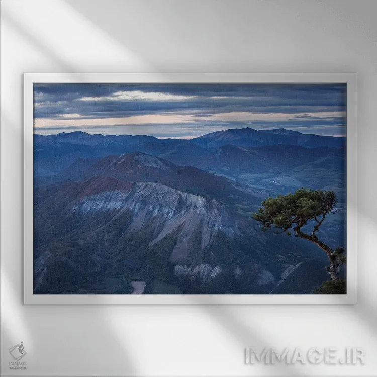گاهی یک اثر کافیست تا فضا جمعوجور شود؛ «کوههای آبی در پروانس» اثرِ «آنابل شابر» چیدمان را از حالت پراکنده خارج میکند؛ برای راهروها و ورودیهای مینیمال پیشنهاد میشود. به دیوار حس «تمامشده» میدهد.