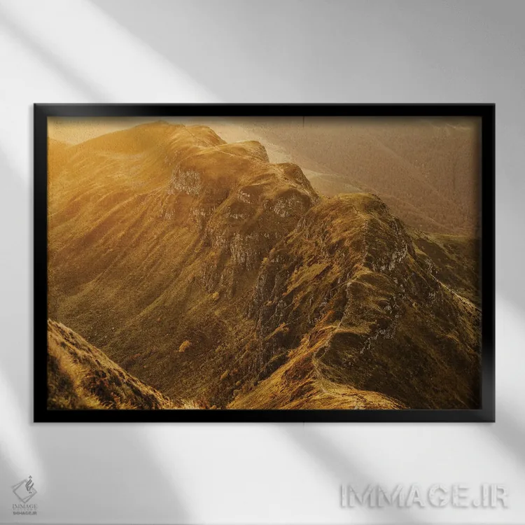 براساس پالت گرم اثر، قاب بلوط روشن (چوبی) پیشنهاد اول است و استخوانی ملایم مکمل. برای سفارشهای پروژهای با ابعاد و قابهای اختصاصی با ایماژ در تماس باشید.