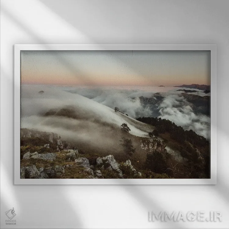 براساس پالت گرم اثر، قاب بلوط روشن (چوبی) پیشنهاد اول است و استخوانی ملایم مکمل. برای سفارشهای پروژهای با ابعاد و قابهای اختصاصی با ایماژ در تماس باشید.