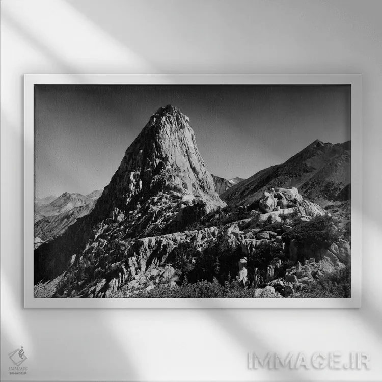 در «قله فین»، اثرِ «انسل آدامز (عکاس طبیعت آمریکایی)» این اثر را با زبان سیاهوسفید ارائه میکند؛ برای دکورهای کلاسیک—مدرن یک انتخاب مطمئن و هماهنگپذیر است.