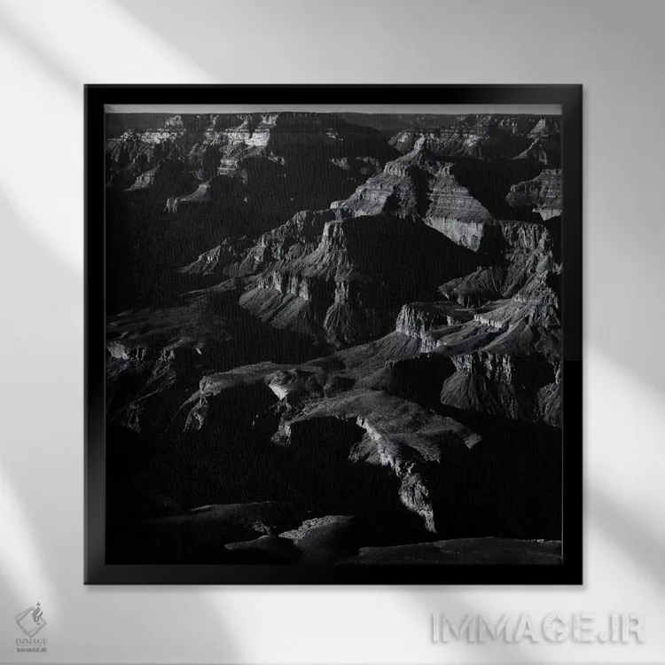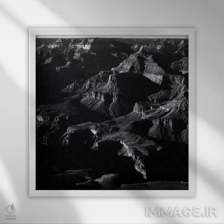 در «گرند کانیون»، اثرِ «انسل آدامز (عکاس طبیعت آمریکایی)» این اثر را با زبان سیاهوسفید ارائه میکند؛ برای دکورهای کلاسیک—مدرن یک انتخاب مطمئن و هماهنگپذیر است.