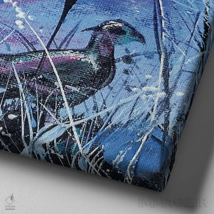 بوم گالری ایماژ نسخهی دکوراتیوِ سطحبالا از یک اثر هنری است؛ روی کنواس سفیدِ یکدست و بدون اسید با فرآیند چاپ حرفهای جیکلی (Giclée) و کنترل دقیق تونها با رنگدانههای آرشیوی و سیستم رنگ دقیق؛ حس نهایی نزدیکتر به ارائهی گالریوار است؛ نه صرفاً یک تصویر. کلافکشی مرتب و یراق نصب استاندارد، تجربهی نصب را ساده میکند.