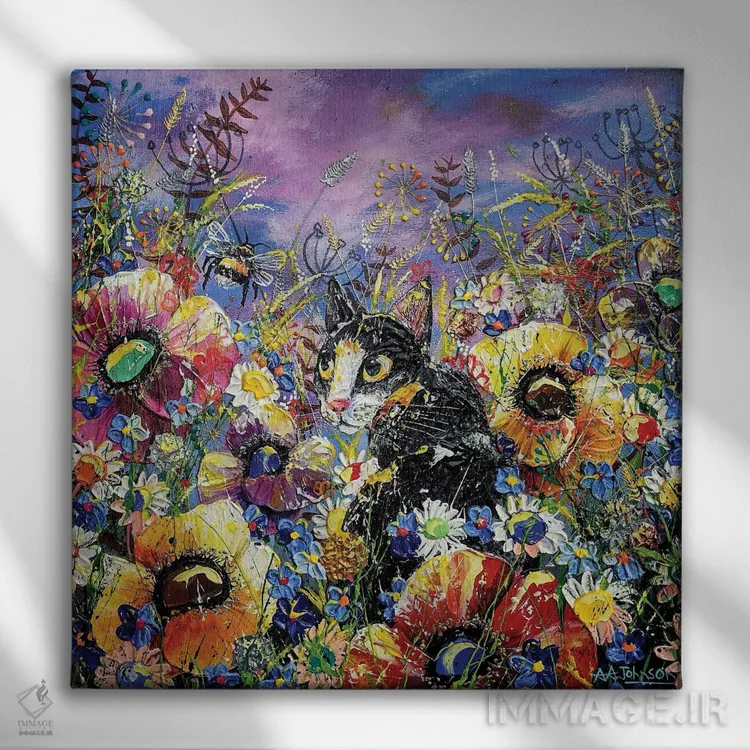تابلو گربه در میان گلها اثر اندرو آلن جانسون