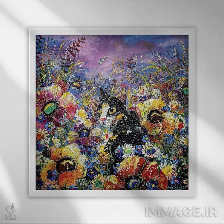 برای دیوارهای ساده، «گربه در میان گلها» اثرِ «اندرو آلن جانسون» در کنار رنگهای خنثی، تضاد دلچسبی میسازد؛ برای اتاق بازی یا گوشهٔ مطالعه انتخابی خوشسلیقه است. هر بار نگاهش میکنید، یک جزئیات تازه به چشم میآید.
