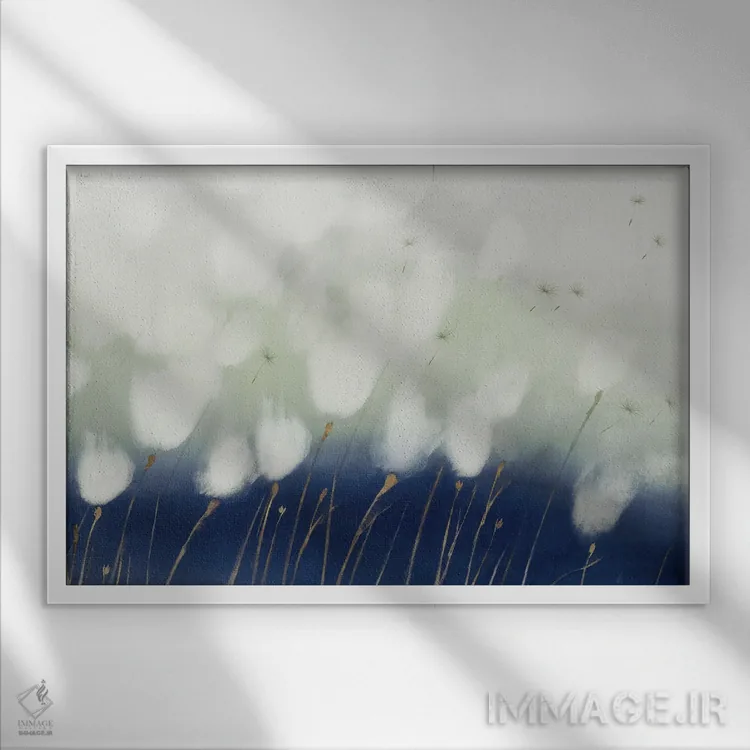 براساس پالت سرد اثر، قاب سفید مات (فریم باریک) پیشنهاد اول است و نقرهای برسخورده (متالیک) مکمل. برای سفارشهای پروژهای با ابعاد و قابهای اختصاصی با ایماژ در تماس باشید.