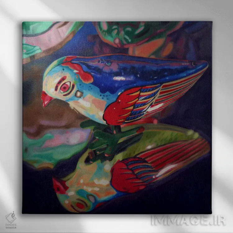 در «پرنده حلبی» اثرِ «آندریا آلوین»، حضور حیوانات در کنار رنگهای خنثی، تضاد دلچسبی میسازد؛ برای نشیمنهای خانوادگی انتخابی خوشسلیقه است. برای دیوار گالریوار هم گزینهٔ خوبیست.
