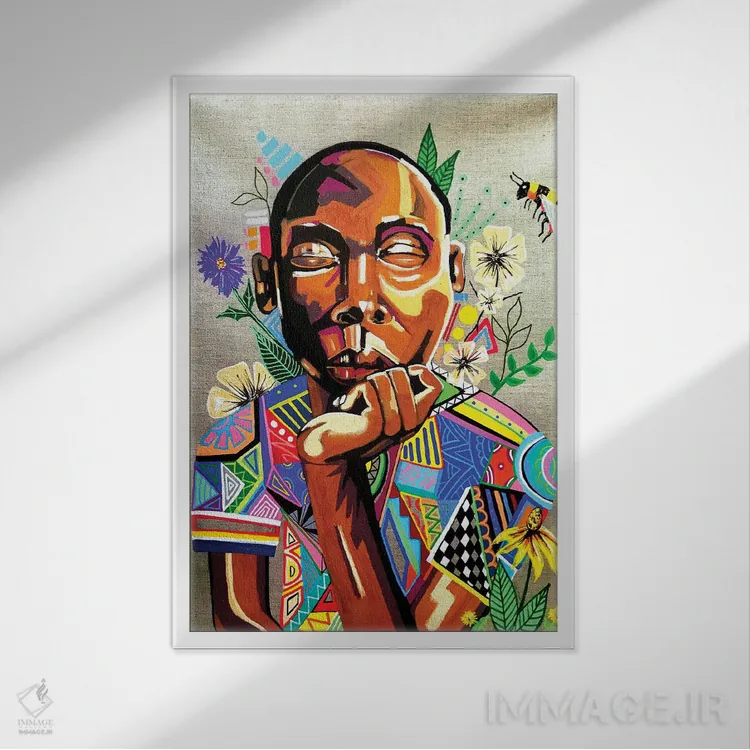 براساس پالت ترکیبی اثر، قاب تیک گرم (چوبی) پیشنهاد اول است و مشکی مات (فریم متوسط) مکمل. برای سفارشهای پروژهای با ابعاد و قابهای اختصاصی با ایماژ در تماس باشید.