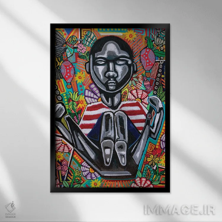 براساس پالت ترکیبی اثر، قاب تیک گرم (چوبی) پیشنهاد اول است و مشکی مات (فریم متوسط) مکمل. برای سفارشهای پروژهای با ابعاد و قابهای اختصاصی با ایماژ در تماس باشید.