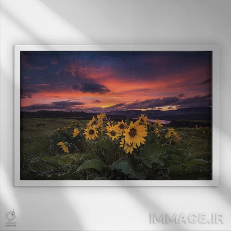 تابلو غروب در تنگه اثر اندی اموس - نمای قاب‌دار سفید