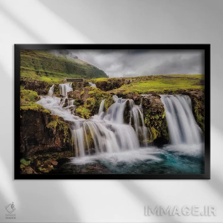 تابلو زیر آبشار اثر اندی اموس - نمای قاب‌دار مشکی
