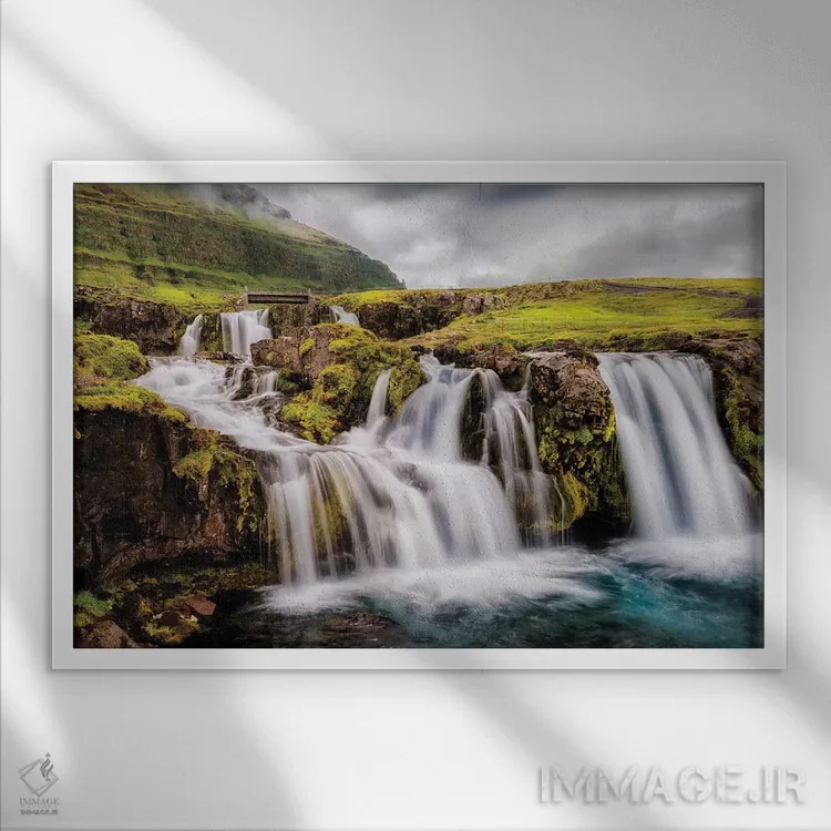 تابلو زیر آبشار اثر اندی اموس - نمای قاب‌دار سفید