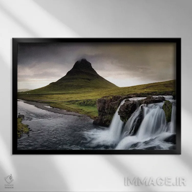 تابلو نزدیک آبشار اثر اندی اموس - نمای قاب‌دار مشکی