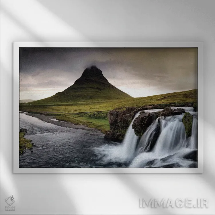 تابلو نزدیک آبشار اثر اندی اموس - نمای قاب‌دار سفید