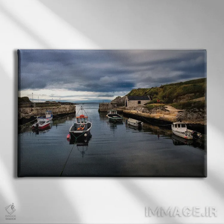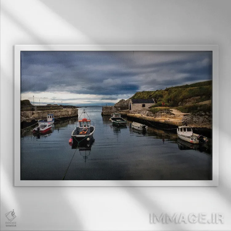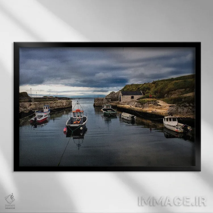 اگر میخواهید دیوار از «پسزمینه» بیرون بیاید، «بندر ماهیگیری» اثرِ «اندی اموس» فضا را روشنتر و زندهتر نشان میدهد؛ برای دیوارهای گالریوار و ترکیب چند اثر پیشنهاد میشود. هم از دور چشمگیر است و هم از نزدیک پرداخت دارد.