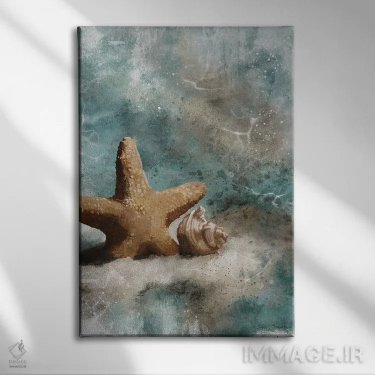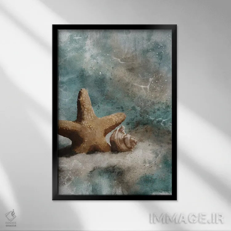 اگر میخواهید دیوار کمی سرزندگیِ محترمانه داشته باشد، «سراب اقیانوس» اثرِ «آنجلا بادن» به فضا، گرمیِ ملایم اضافه میکند، برای دکورهایی با رنگهای خنثی گزینهٔ مناسبیست. هر بار نگاهش میکنید، یک جزئیات تازه به چشم میآید.