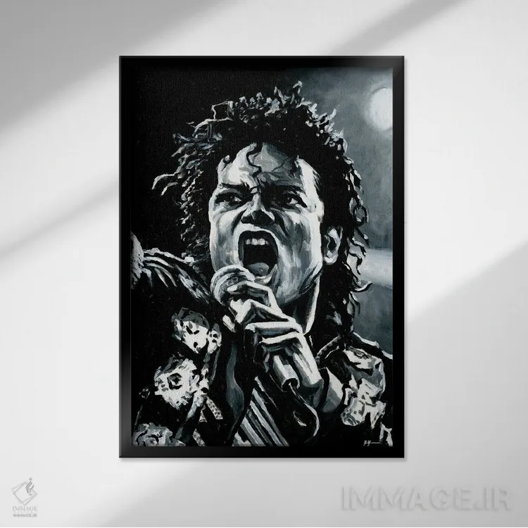 تابلو مایکل جکسون (خواننده) اثر الکس استاچ‌بری - نمای قاب‌دار مشکی