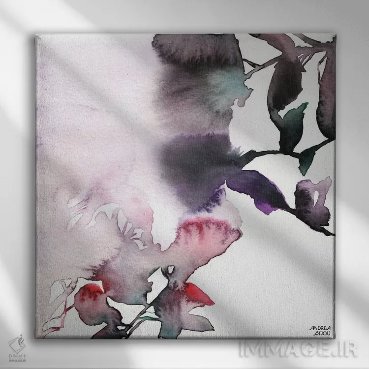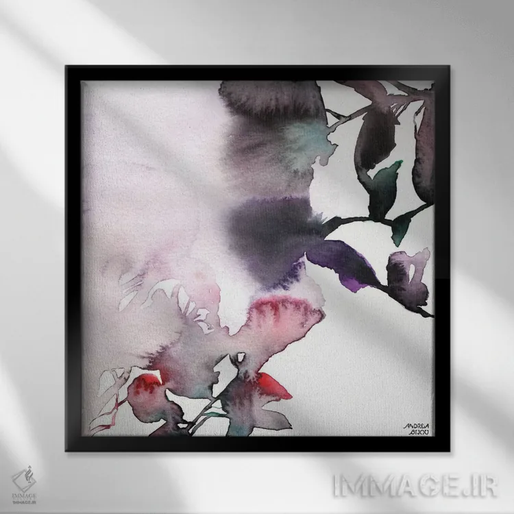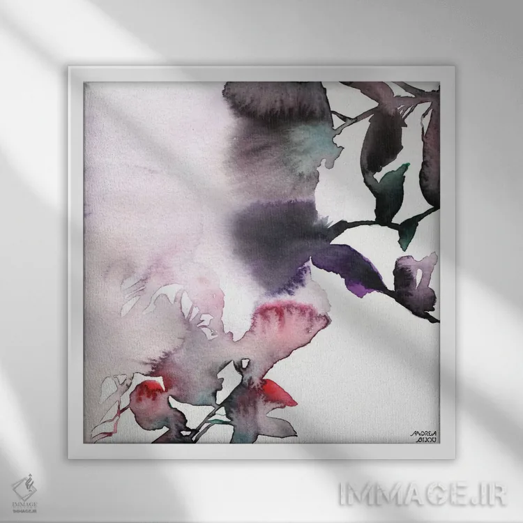 «سهگانه گلهای صورتی و بنفش با آبرنگ ۱» اثرِ «آندریا بیجو» مثل یک نفس تازه است؛ به دیوار، روشناییِ ملایم و دلنشین میدهد؛ برای فضاهای بوهمی انتخابی خوشسلیقه است. فضا را شلوغ نمیکند؛ فقط لطیفترش میکند.