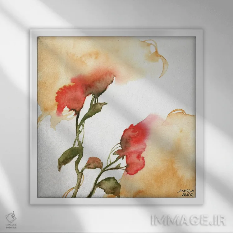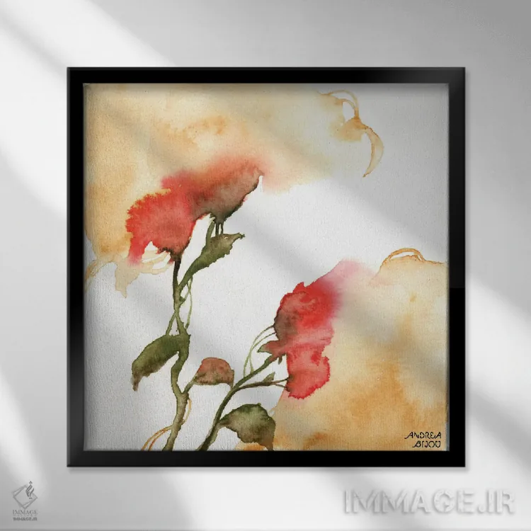 تابلو گلهای زرد و قرمز با آبرنگ ۲ اثر آندریا بیجو