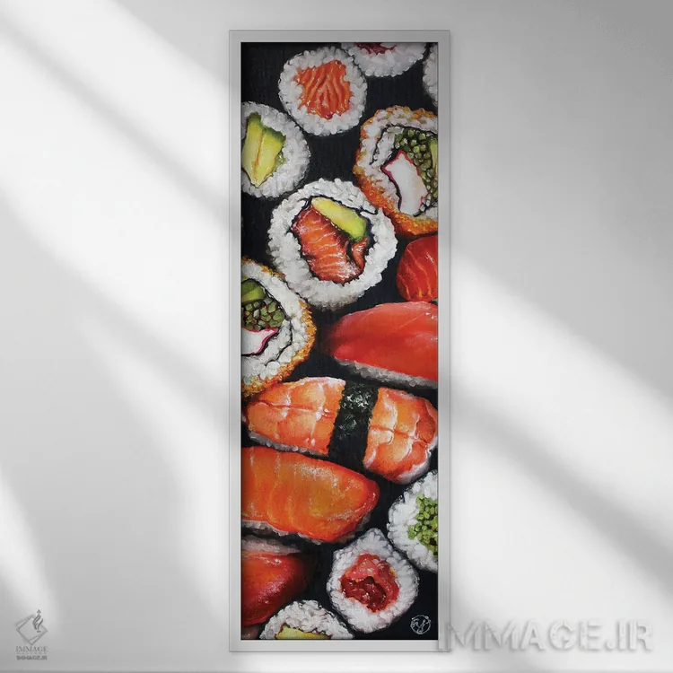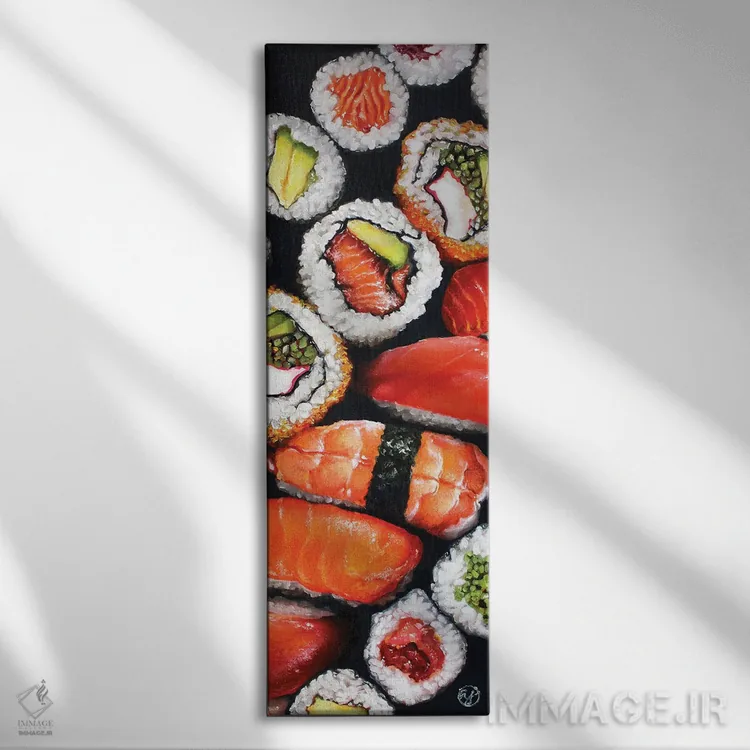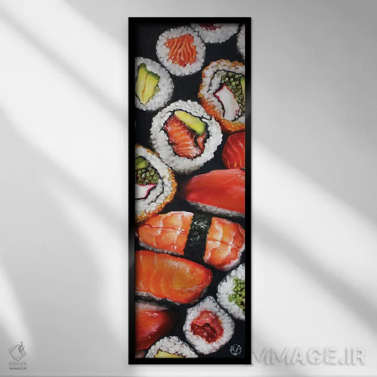 این تابلو با عنوان «سینی سوشی» اثرِ «ابرا جانسون»، حسِ گرم و صمیمی به فضا میدهد.