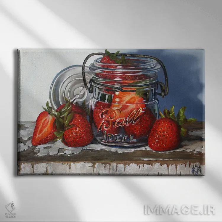 تابلو شیشهٔ مربا و توت‌فرنگی‌ها اثر ابرا جانسون - نمای پرسپکتیو محصول