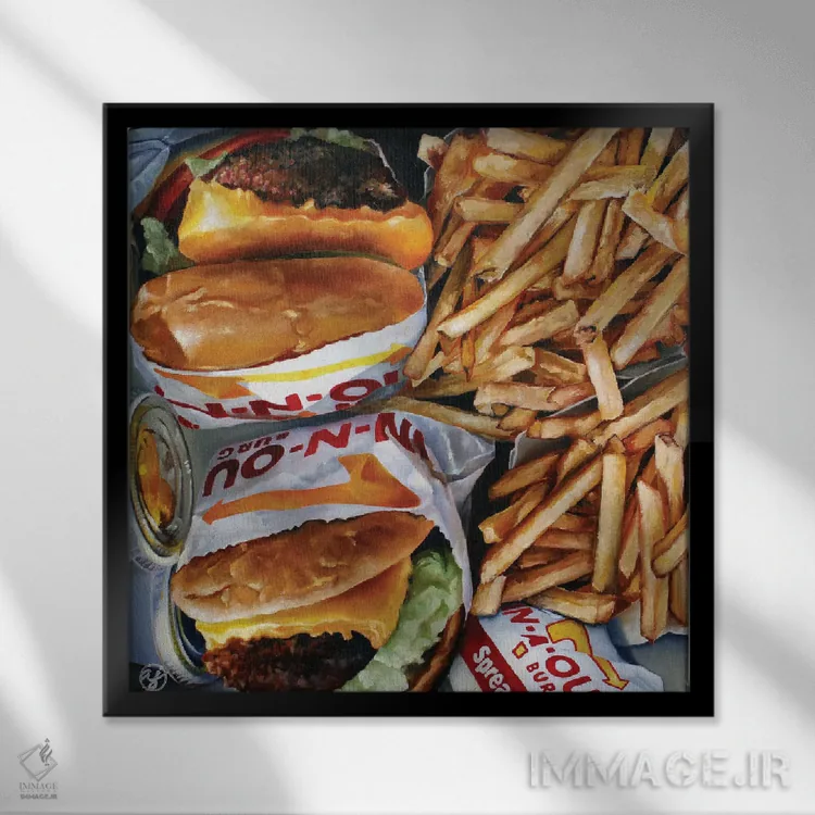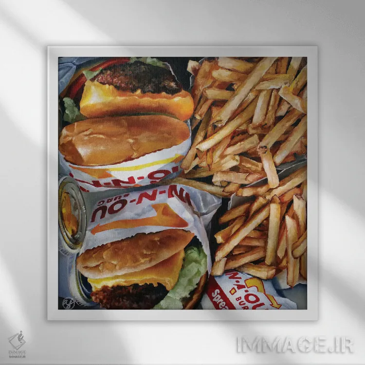 «همبرگر برای دو نفر» اثرِ «ابرا جانسون» برای کافهاستایلهای خانگی و دیوارهای نزدیک میز عالی است.
