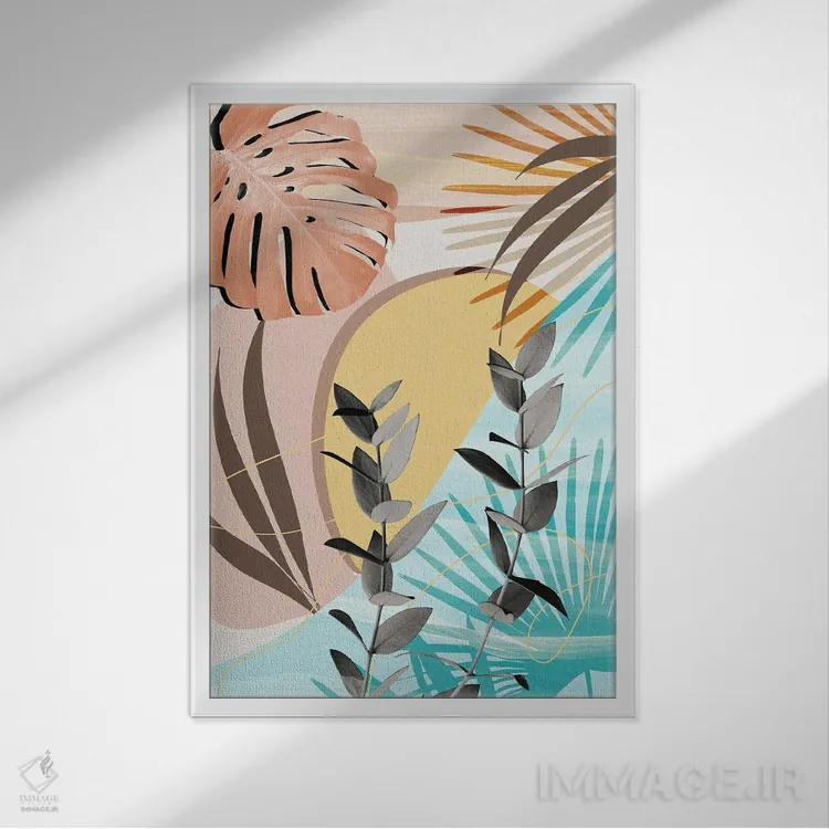 براساس پالت ترکیبی اثر، قاب بلوط روشن (چوبی) پیشنهاد اول است و استخوانی ملایم مکمل. برای سفارشهای پروژهای با ابعاد و قابهای اختصاصی با ایماژ در تماس باشید.