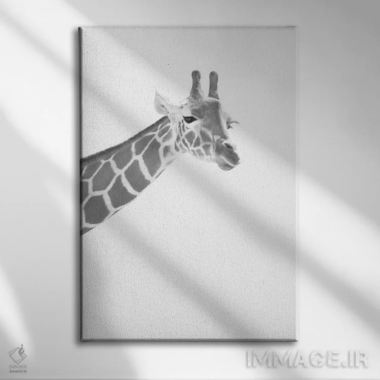 تابلو زرافه سیاه و سفید رویایی I اثر هنر آنیتا و بلا - نمای نزدیک بافت بوم