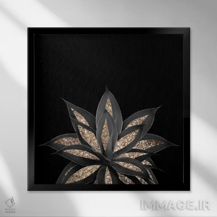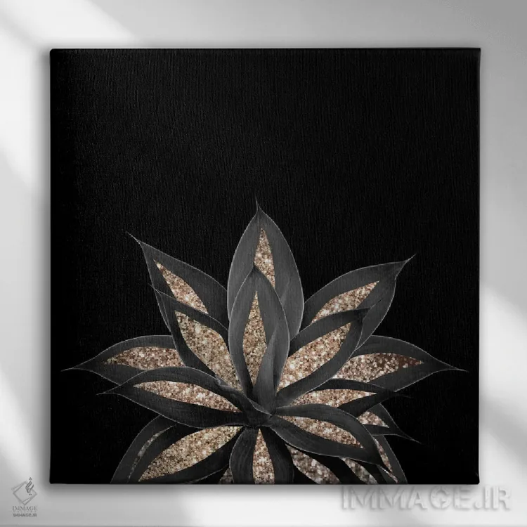 تابلو آگاو خاکستری-سیاه با درخشش طلایی I اثر هنر آنیتا و بلا