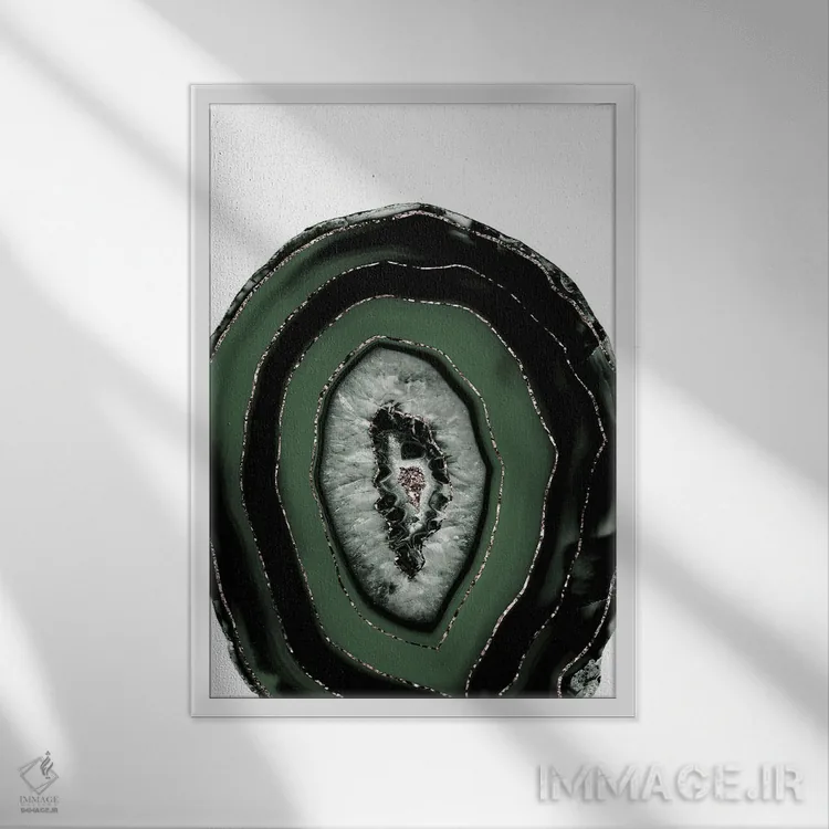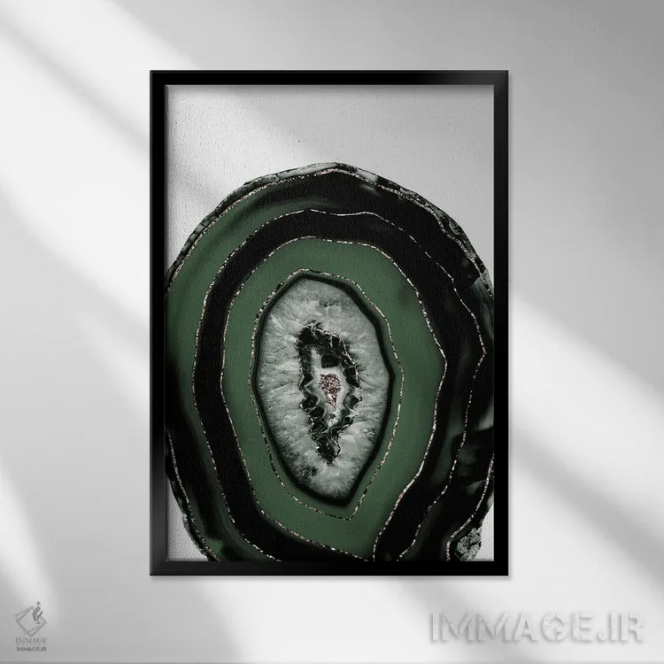 تابلو عقیق سبز و سیاه با درخشش طلایی I اثر هنر آنیتا و بلا - نمای قاب‌دار سفید