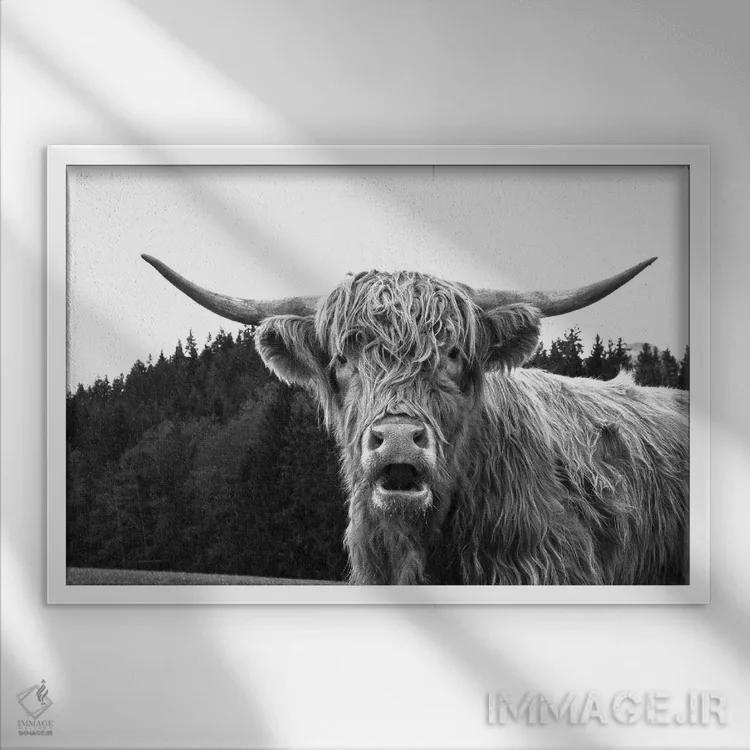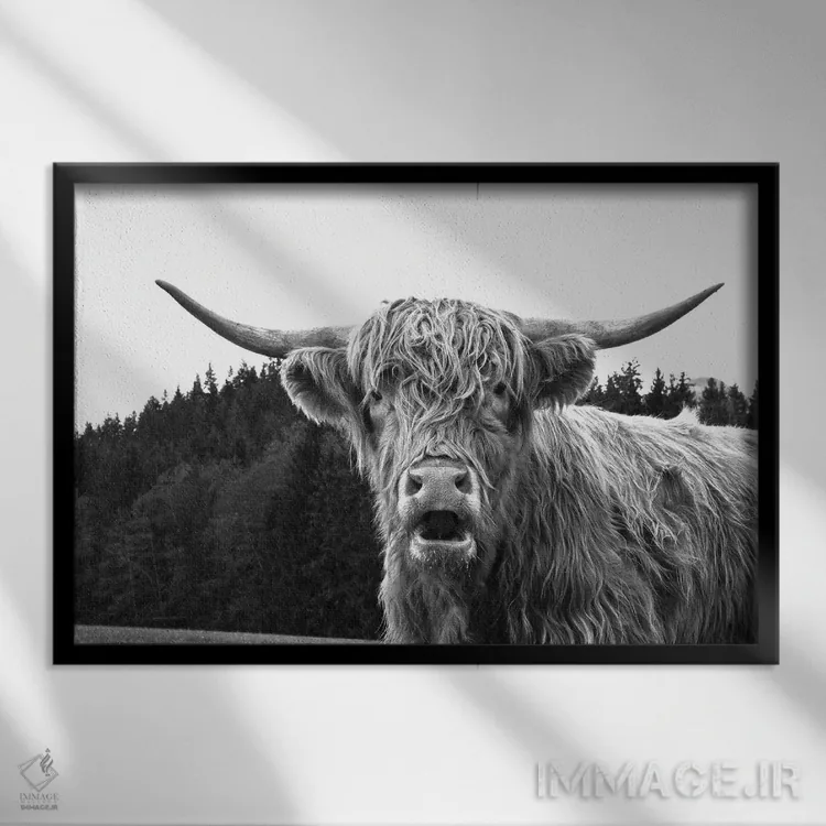 تابلو گاو کوهستانی سیاه و سفید I اثر هنر آنیتا و بلا - نمای قاب‌دار مشکی