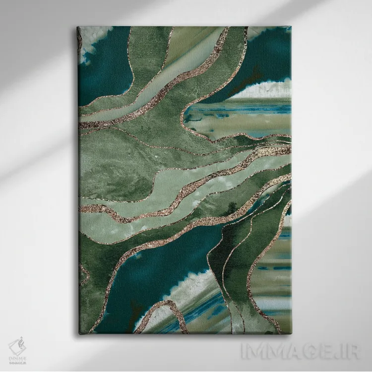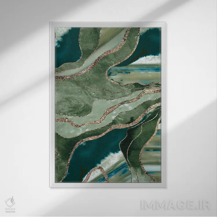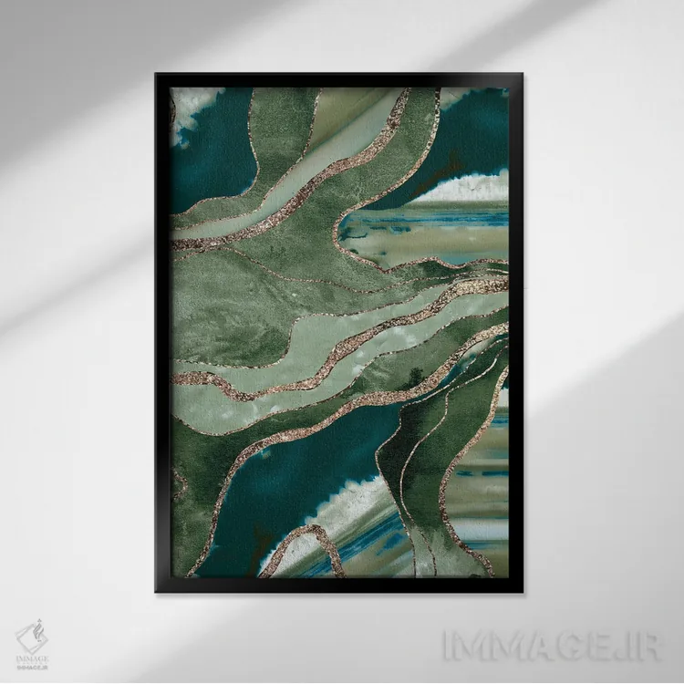 تابلو عقیق مرمر سبز زیتونی با درخشش طلایی پرزرقوبرق I اثر هنر آنیتا و بلا