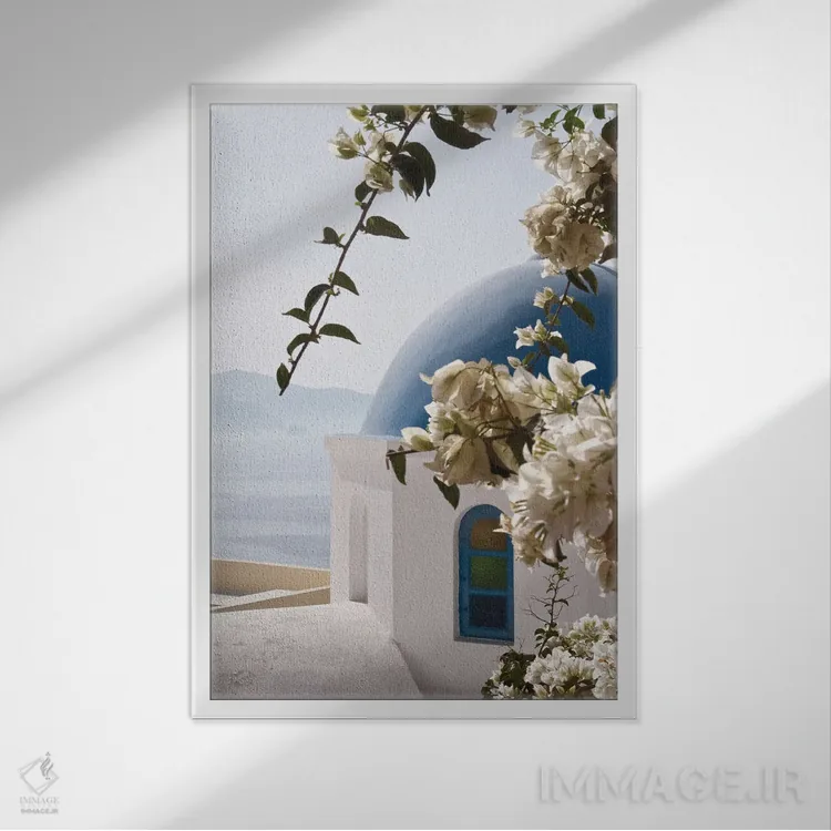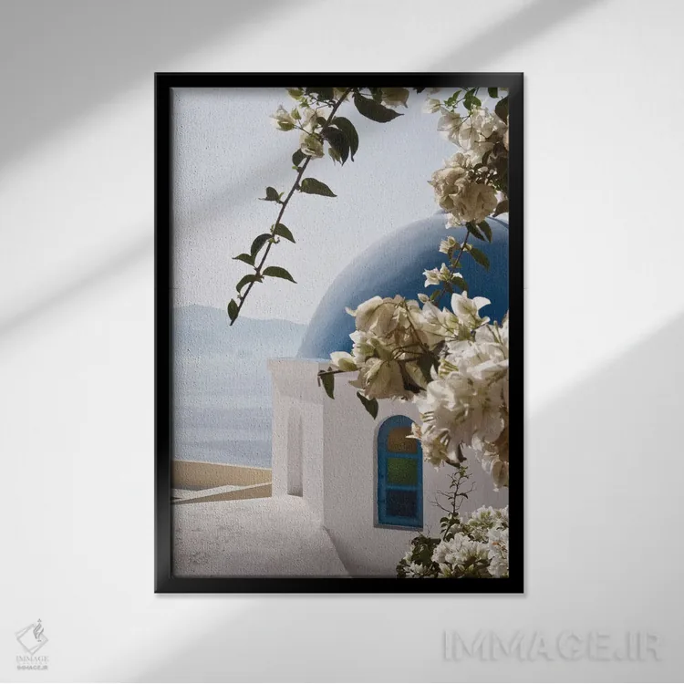 «اویای سانتورینی III (محلهای در سانتورینی)» اثرِ «هنر آنیتا و بلا» با حالوهوای تزئینیِ این اثر، فضا را روشن و مرتب میکند؛ مناسب نشیمنهای روشن و چیدمانهای مدرن.