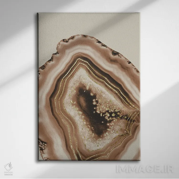 تابلو آگات قهوهای ملایم با ورقه طلایی براق I اثر هنر آنیتا و بلا