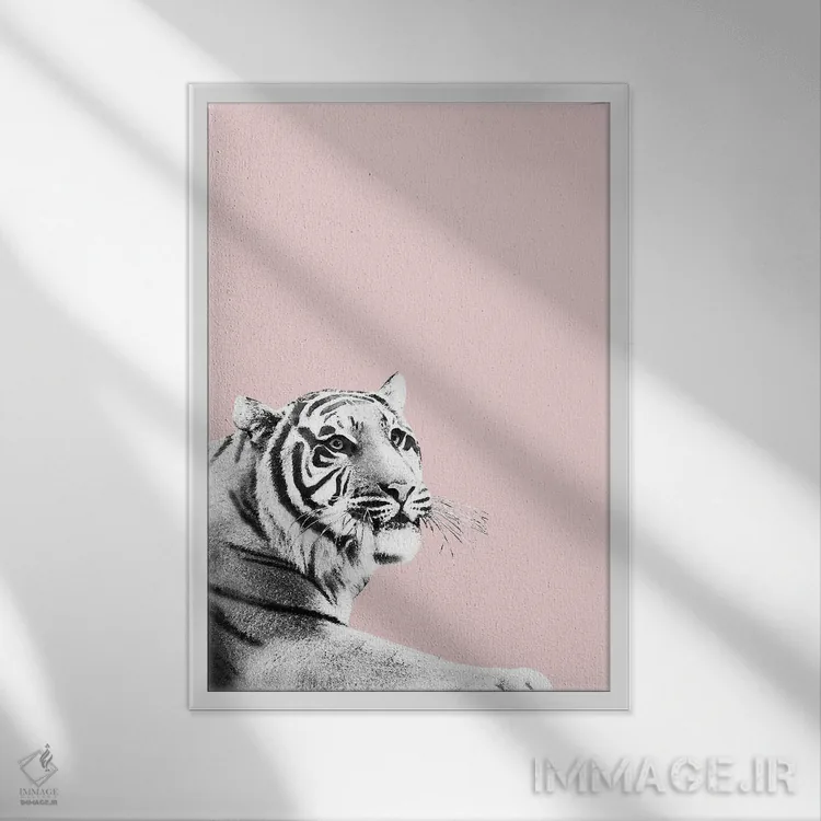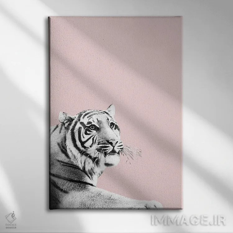 تابلو ببر سیاه و سفید بر زمینهٔ رنگ گونه I اثر هنر آنیتا و بلا