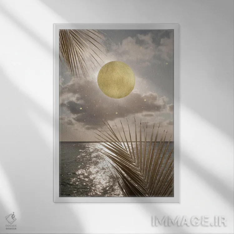 براساس پالت گرم اثر، قاب بلوط روشن (چوبی) پیشنهاد اول است و استخوانی ملایم مکمل. برای سفارشهای پروژهای با ابعاد و قابهای اختصاصی با ایماژ در تماس باشید.