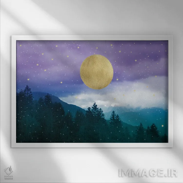 تابلو منظرهٔ شب کوهستانی بنفش و سبزآبی رؤیایی I اثر هنر آنیتا و بلا