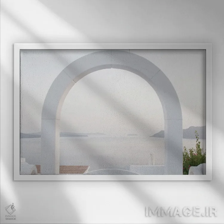 تابلو دروازهٔ اویای سانتورینی V (محله‌ای در سانتورینی) اثر هنر آنیتا و بلا - نمای قاب‌دار سفید