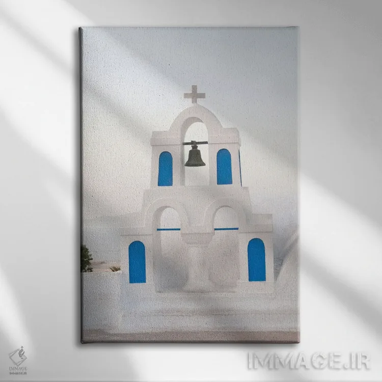 تابلو برج ناقوس سفید و آبی اویا سانتورینی یک اثر هنر آنیتا و بلا