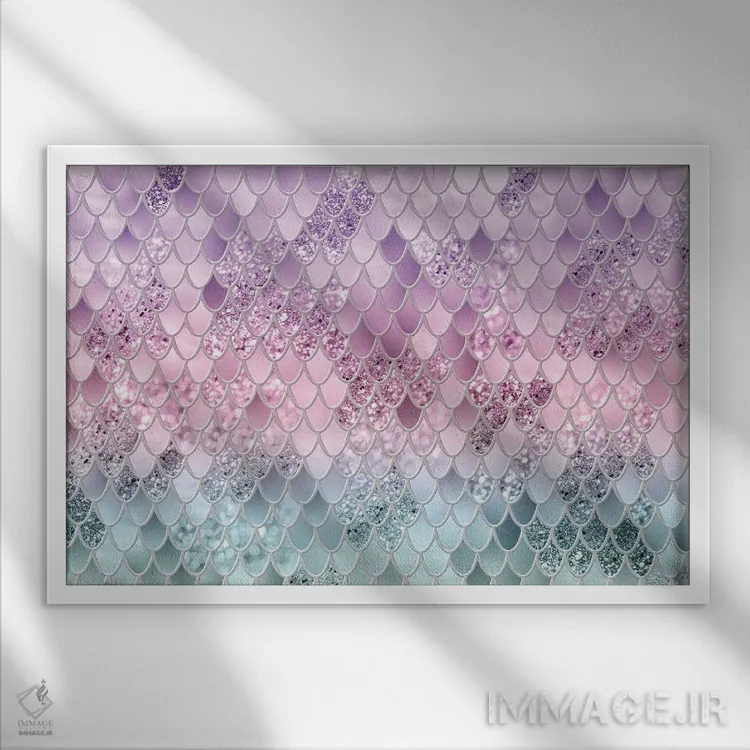 تابلو فلس درخشان پری دریایی ۲A (درخشش مصنوعی) اثر هنر آنیتا و بلا - نمای قاب‌دار سفید