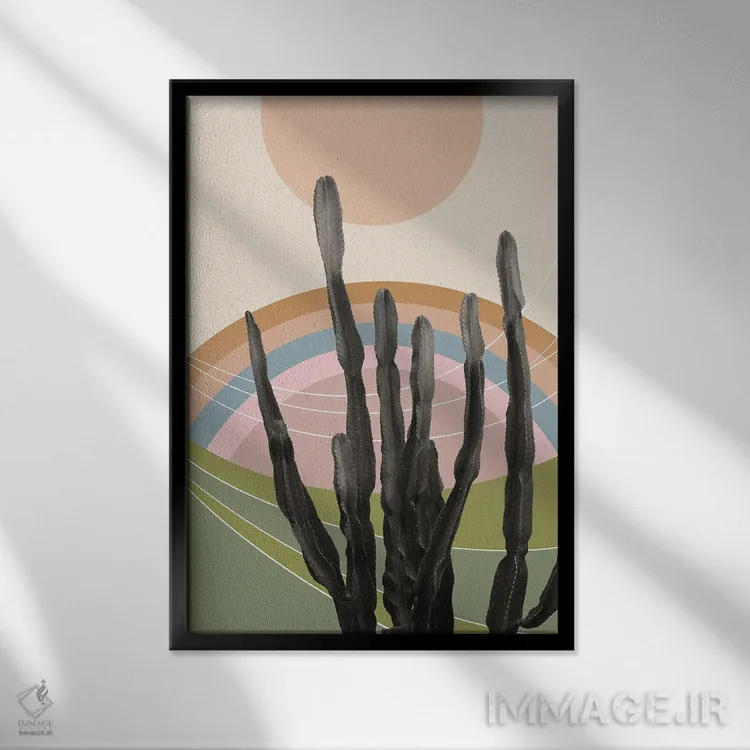 تابلو کاکتوس در صحرا دوم اثر هنر آنیتا و بلا - نمای قاب‌دار مشکی