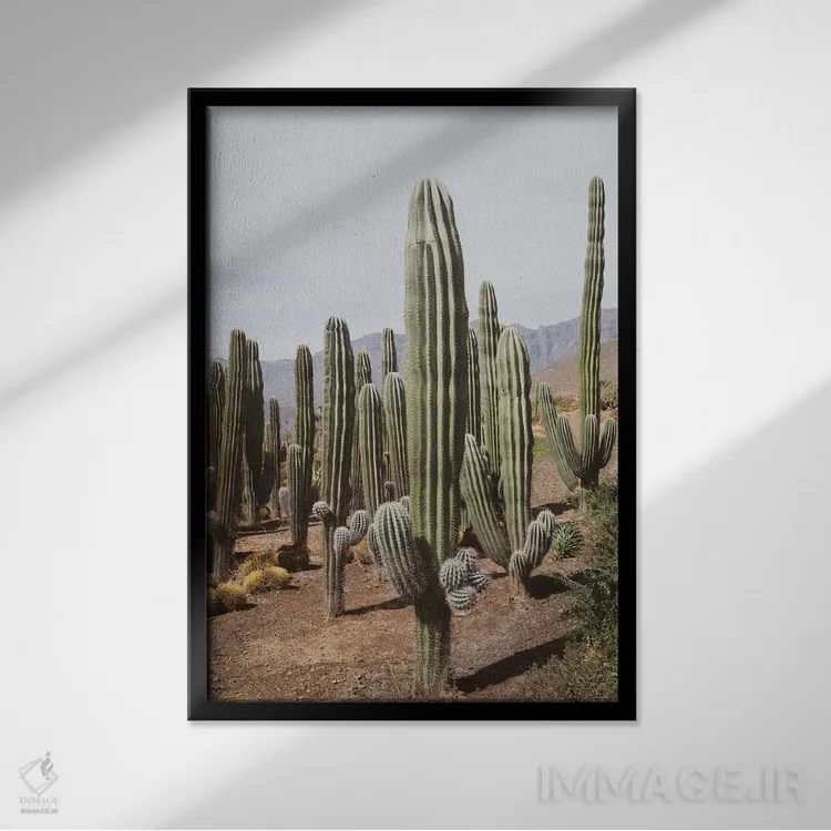 تابلو واحه کاکتوس یکم اثر هنر آنیتا و بلا - نمای قاب‌دار مشکی
