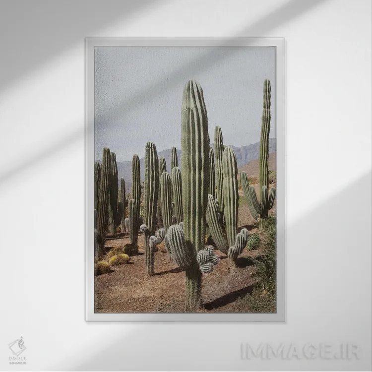 تابلو واحه کاکتوس یکم اثر هنر آنیتا و بلا - نمای قاب‌دار سفید