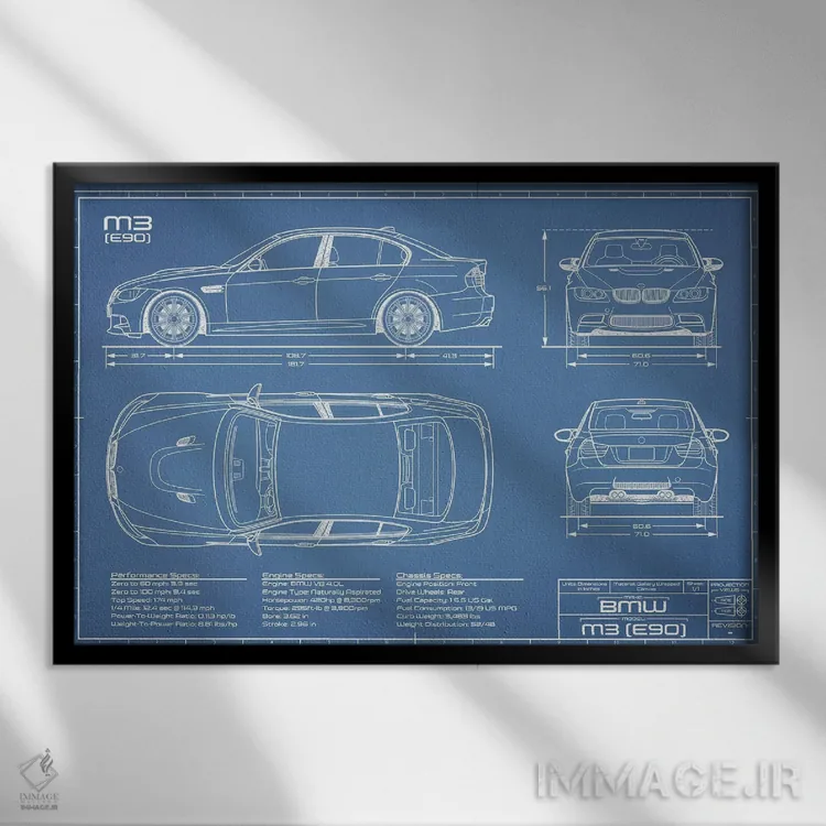 تابلو نقشهٔ بیامو M3 (E90) اثر اکشن بلوپرینتس (نقشههای اکشن)