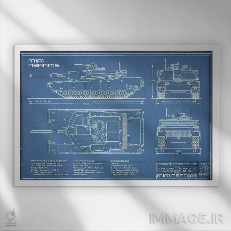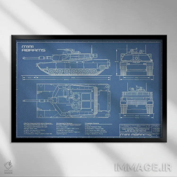 تابلو نقشهٔ تانک جنگی آبرامز M1A1 مدل ۱۹۸۰ اثر اکشن بلوپرینتس (نقشههای اکشن)