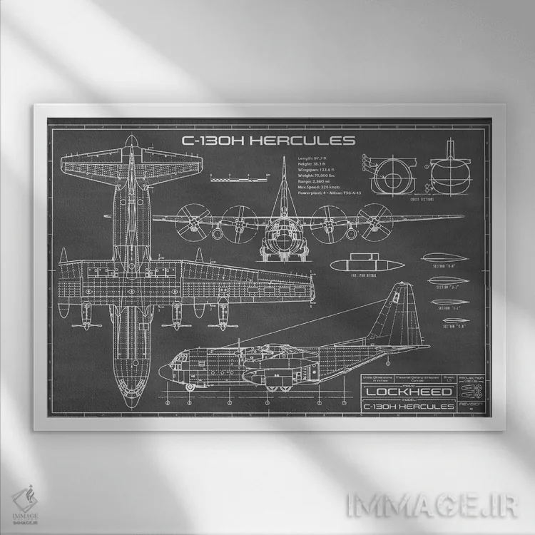 تابلو هواپیمای هرکولس C-130 (مشکی) اثر اکشن بلوپرینتس (نقشههای اکشن)
