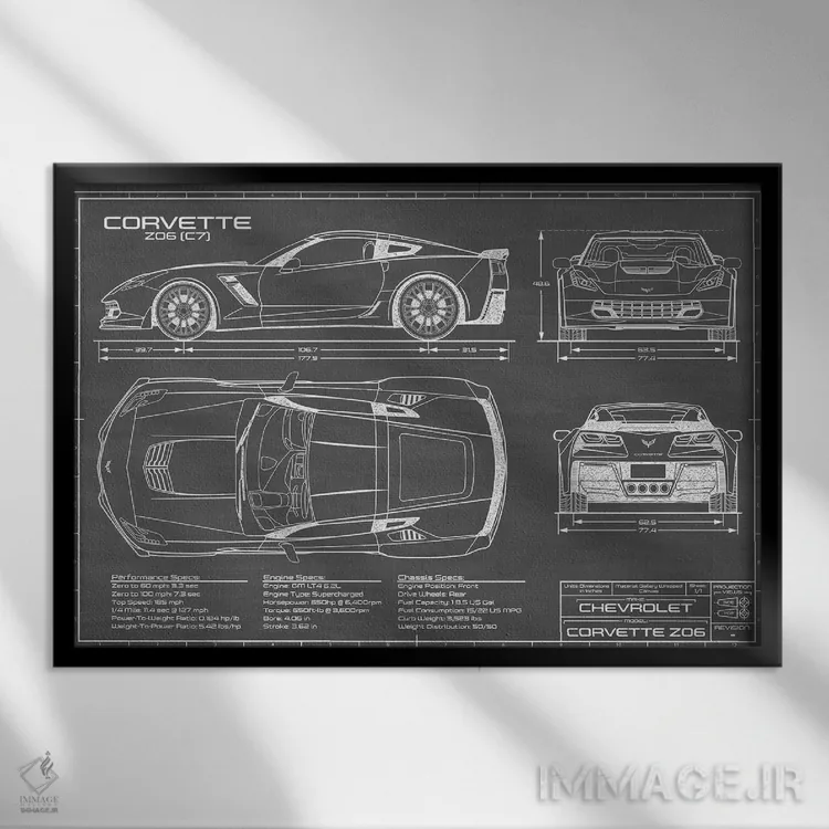 تابلو کوروت Z06 (C7) مشکی اثر اکشن بلوپرینتس (نقشههای اکشن)
